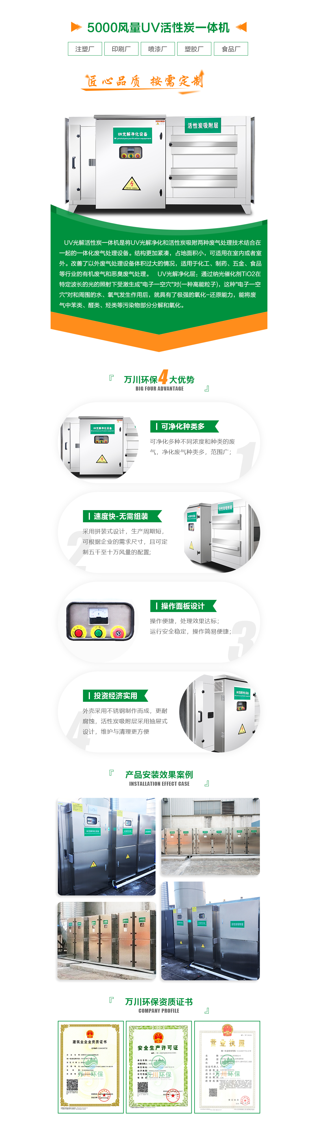 簡(jiǎn)介:UV光解活性炭一體機(jī)是將UV光解凈化和活性炭吸附兩種廢氣處理技術(shù)結(jié)合在一起的一體化廢氣處理設(shè)備。結(jié)構(gòu)更加緊湊,占地面積小,可適用在室內(nèi)或者室外。改善了以外廢氣處理設(shè)備體積過(guò)大的情況,適用于化工、制藥、五金、食品等行業(yè)的有機(jī)廢氣和惡臭廢氣處理。