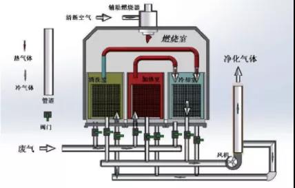 RTO適用于連續(xù)性排放濃度較高的生產(chǎn)工藝廢氣處理,對于生產(chǎn)工藝中揮發(fā)的所有VOCS有機廢氣都可有效處理;