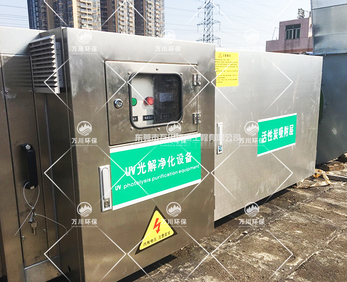 UV光解活性炭吸附一體化設備是萬川環保自主研發設計的一款環保設備,結合了UV光解和活性炭吸附的特點,減少了設備體積和占地面積,可以混合處理多種廢氣,凈化效率達到98%以上。
