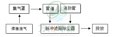 工程師根據現場焊接煙塵性質粒徑現場工況等因素考量,故采用脈沖濾筒除塵器作為處理設備