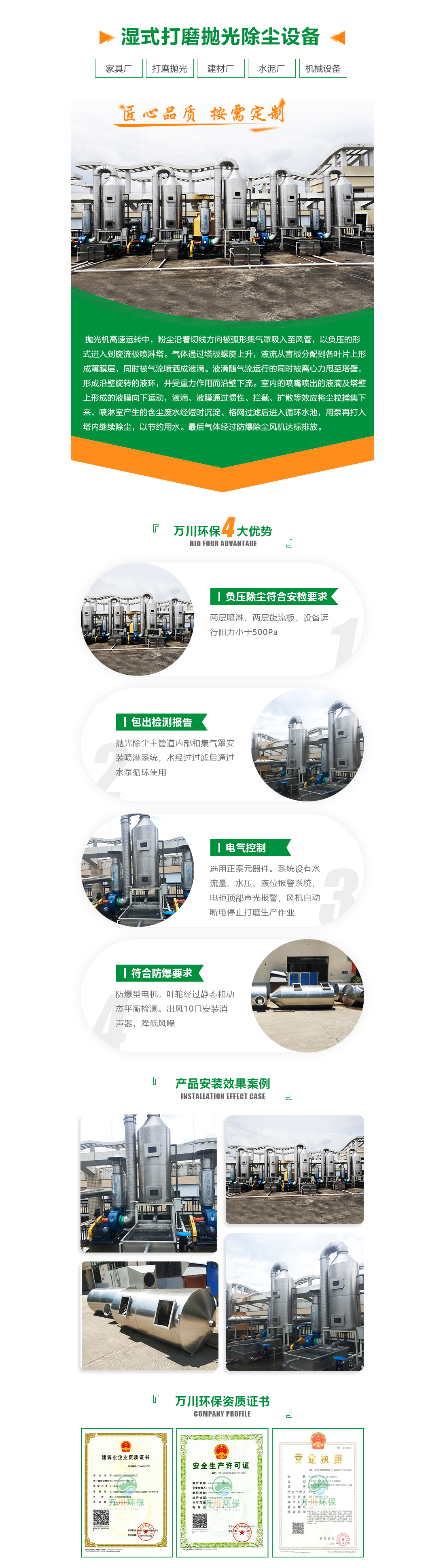 簡介:惠州市恒信億豐金屬制品有限公司,是一家以生產(chǎn)高質(zhì)量的表帶、表殼、首飾、CNC加工零配件為主的大型港資企業(yè)。該公司設(shè)有多條表帶打磨拋光生產(chǎn)線。生產(chǎn)作業(yè)時,車間內(nèi)飄揚(yáng)起的打磨拋光粉塵會導(dǎo)致生產(chǎn)效率下降,而且金屬打磨粉塵擁有易燃易爆的特點(diǎn),存在較大的安全隱患 五金廠打磨拋光生產(chǎn)線 五金廠打磨拋光粉塵處理流程簡圖 拋光機(jī)高速運(yùn)轉(zhuǎn)中,粉塵沿著切線方向被弧形集氣罩吸入至風(fēng)管,以負(fù)壓的形式進(jìn)入到旋流板噴淋...